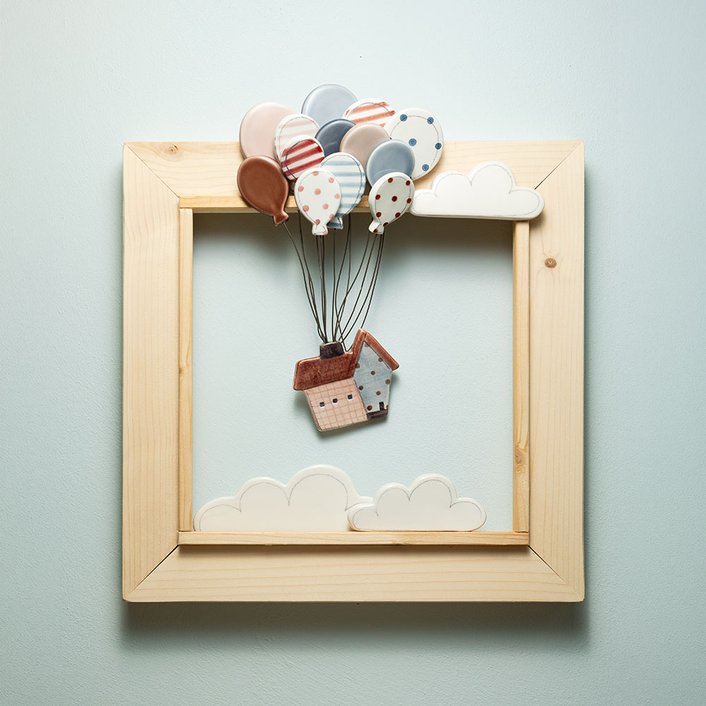 Cornice realizzata interamente a mano con legno di abete grezzo, ispirata al film Pixar Up.
