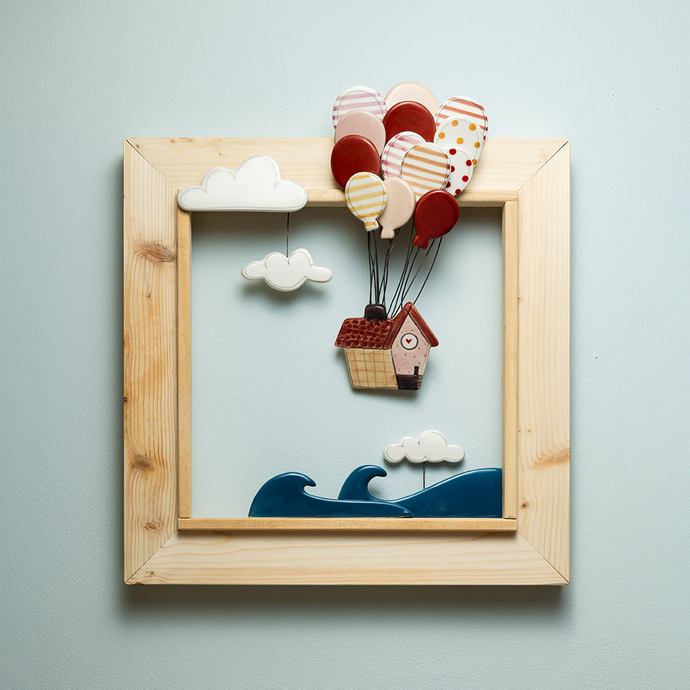 Cornice realizzata interamente a mano con legno di abete grezzo, ispirata al film Pixar Up.